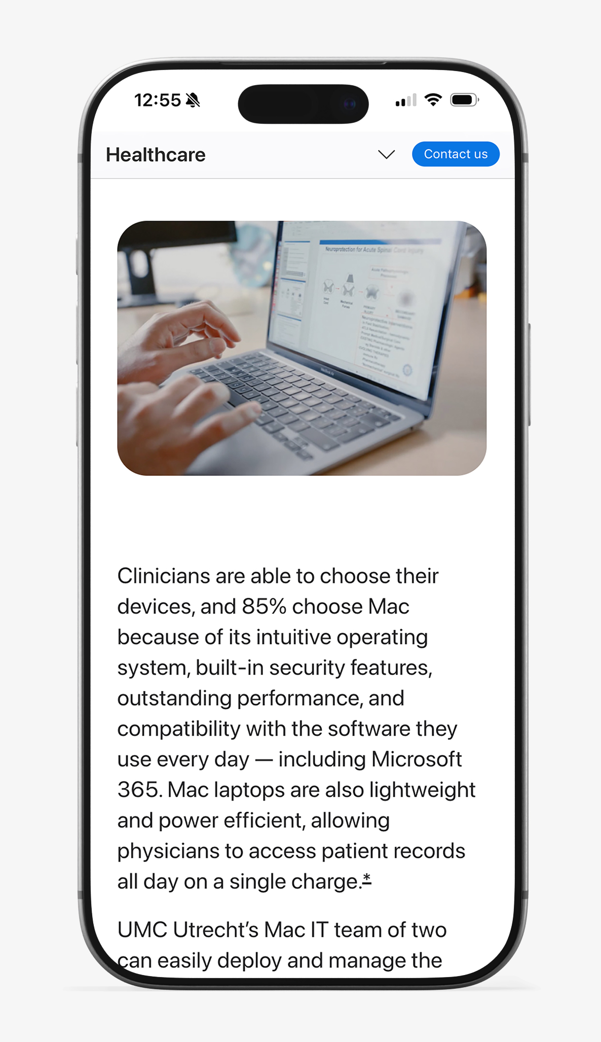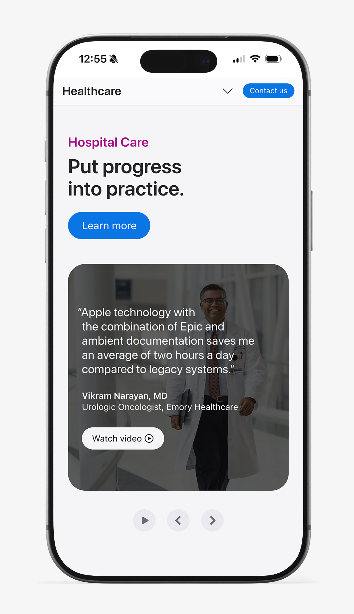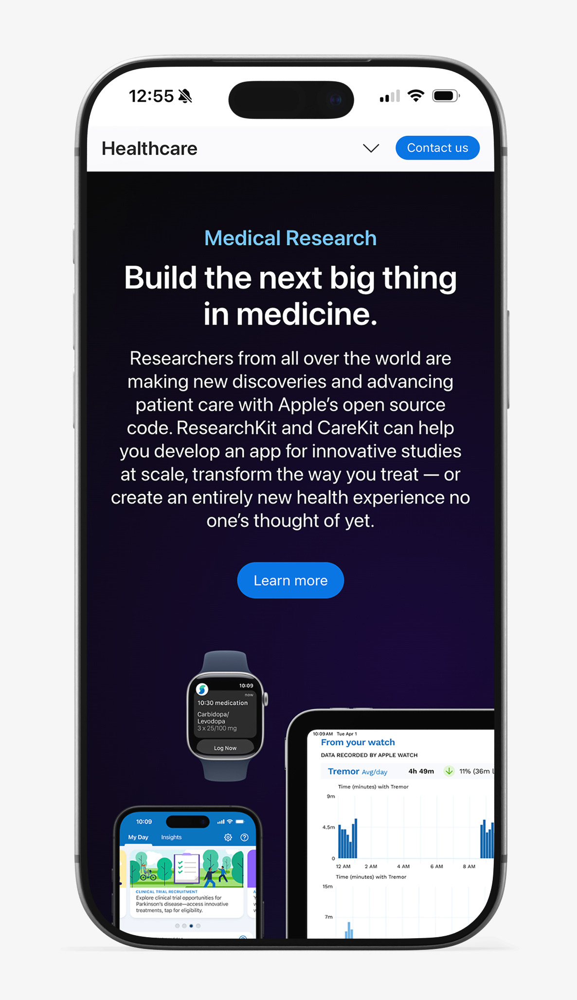 The updated platform streamlined publishing workflows, reduced reliance on custom development, and enabled faster rollout of new healthcare content initiatives. Visual consistency improved across pages and devices, while the new component system created a scalable foundation aligned with Apple’s evolving CMS roadmap. Most importantly, the redesigned experience made it easier to tell meaningful product stories that connect technology and healthcare in a clear, human way.